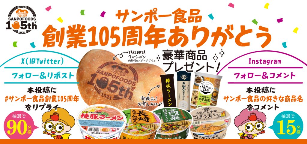 < X&Instagram同時開催>「サンポー食品 創業105周年ありがとう」企画!